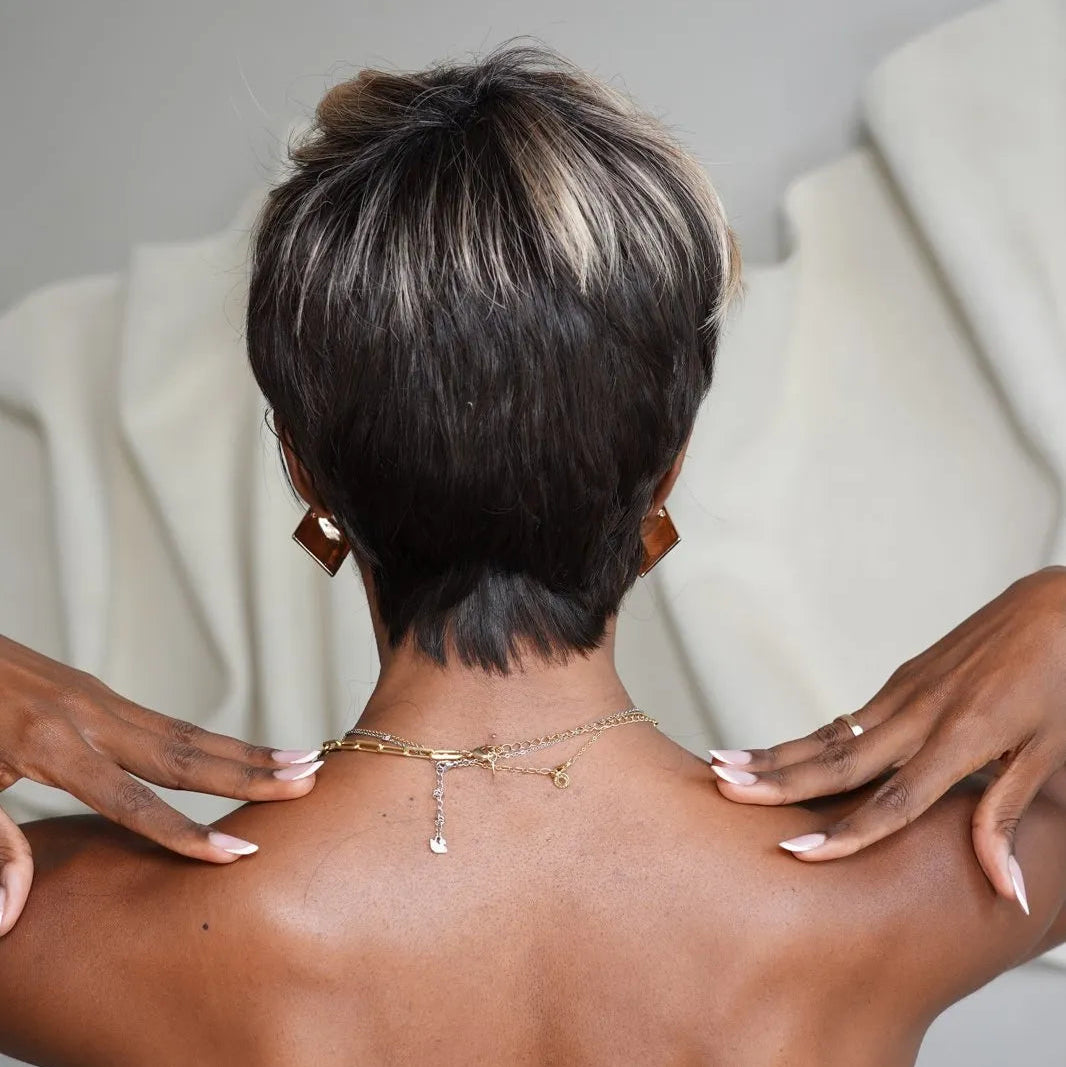 Blonde Highlight Layered Short Pixie Cut Glueless Wig 100% Human Hair