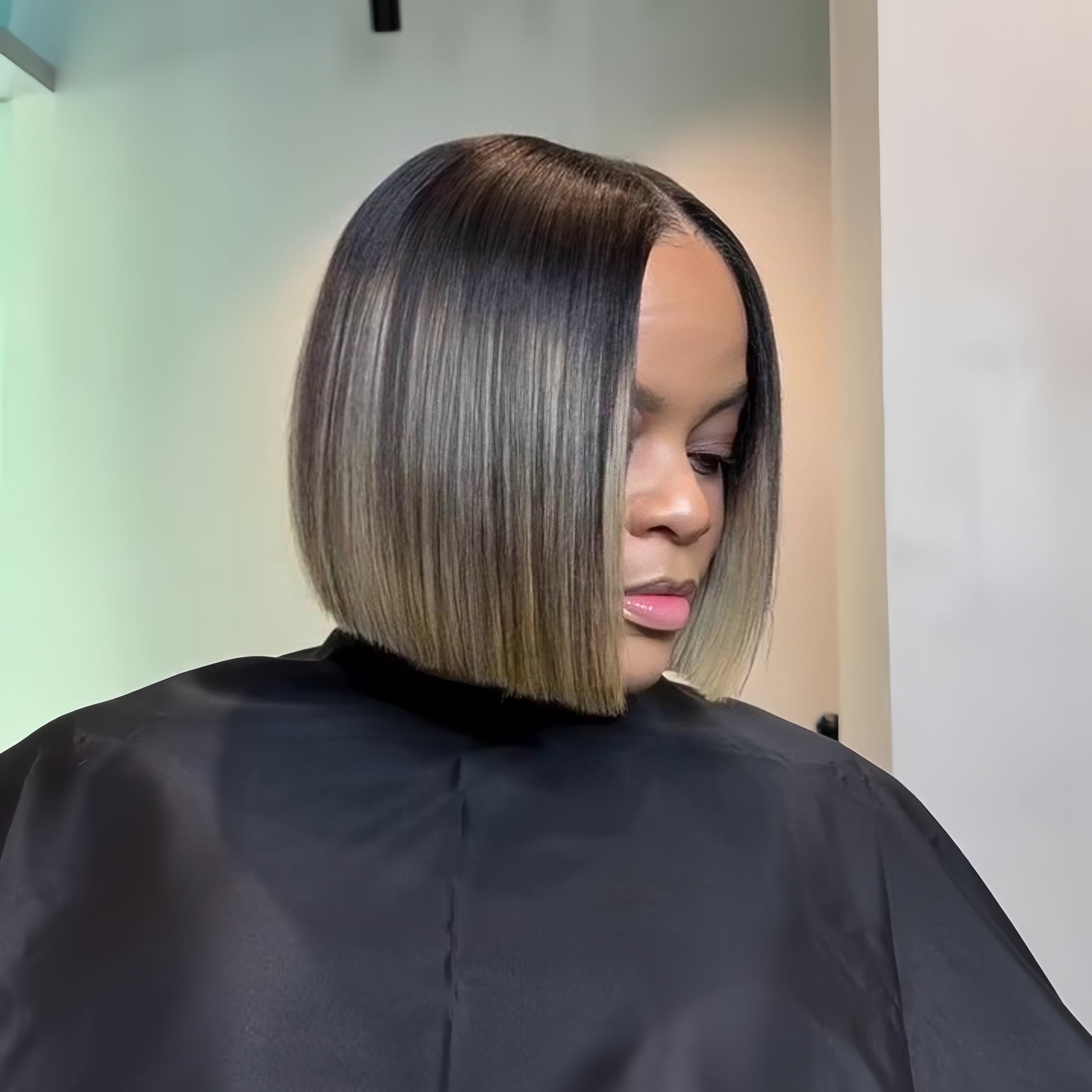 Chic Ombre Short Straight Human Hair Bob 5×5 Lace Closure Wig