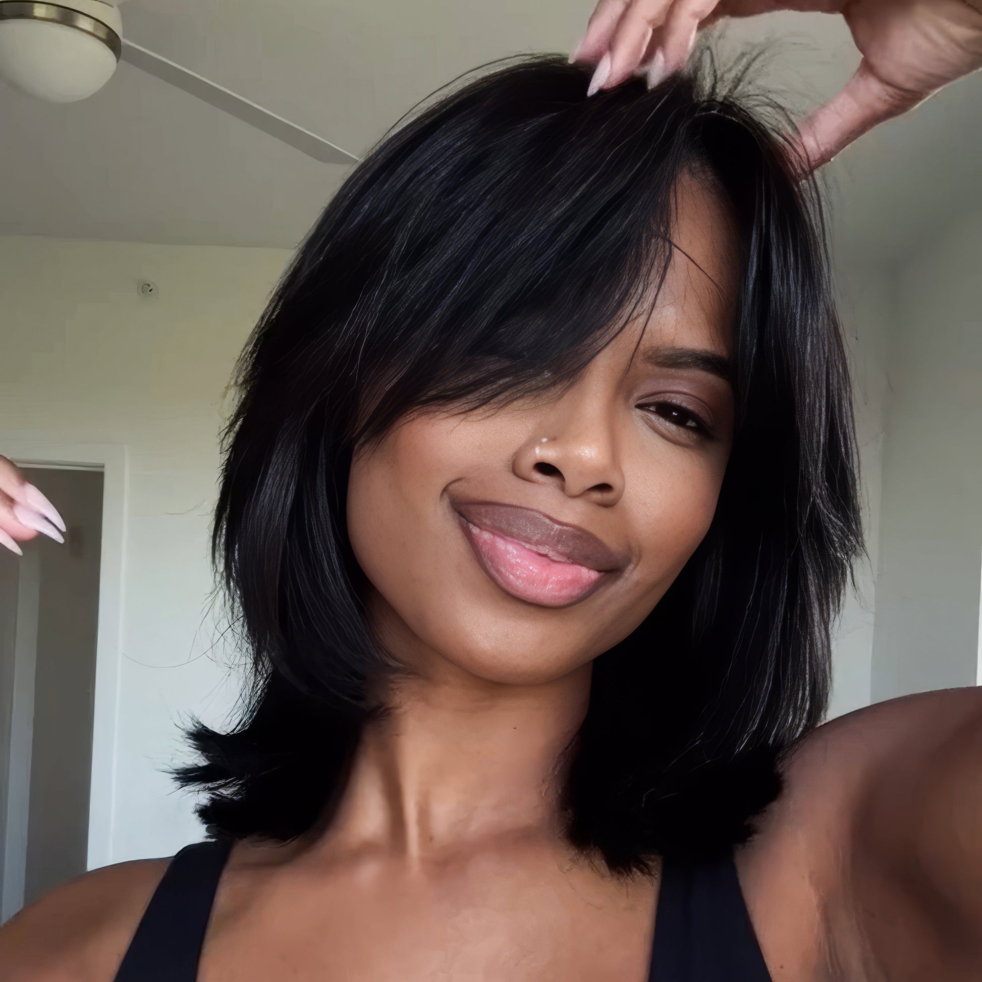 Face-Framing Sleek Swoop Bangs Layered Bob 5x5 Lace Human Hair Wig