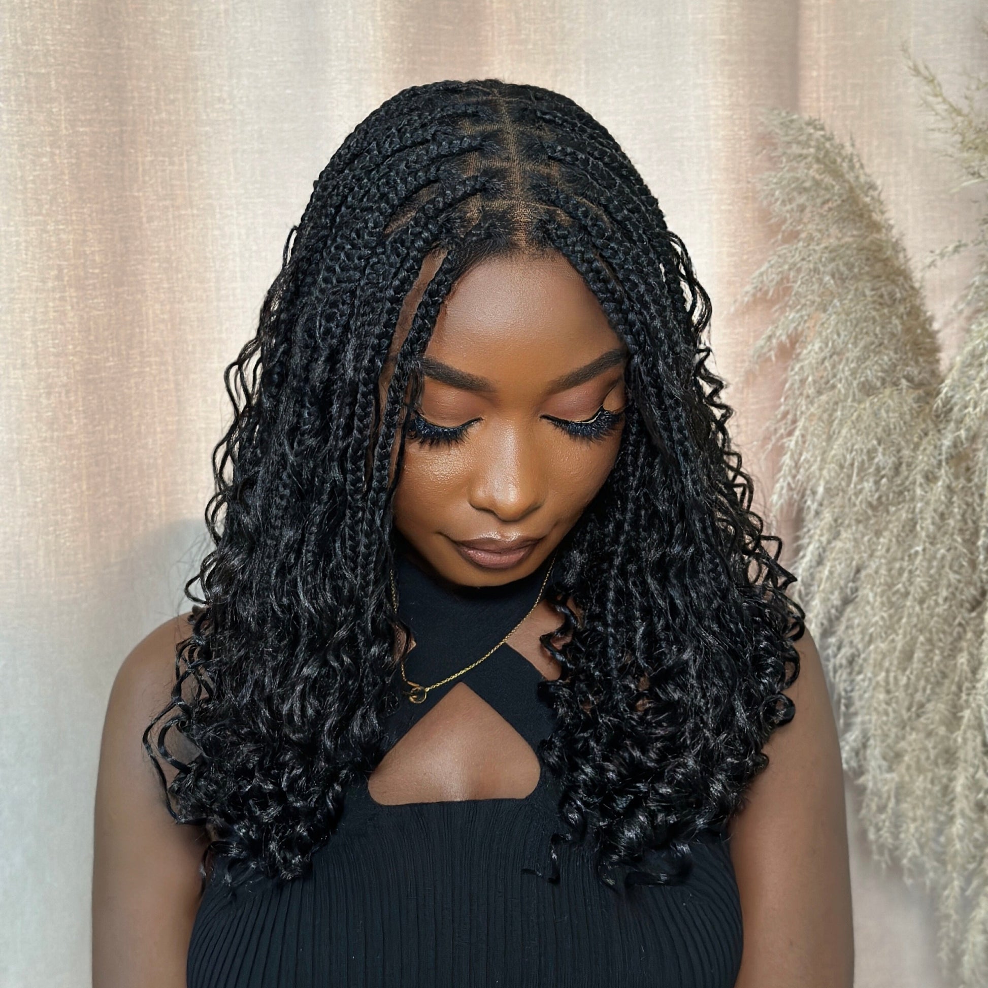 Full Lace Knotless Bohemian Braided Curls Invisi Drawstring Wig