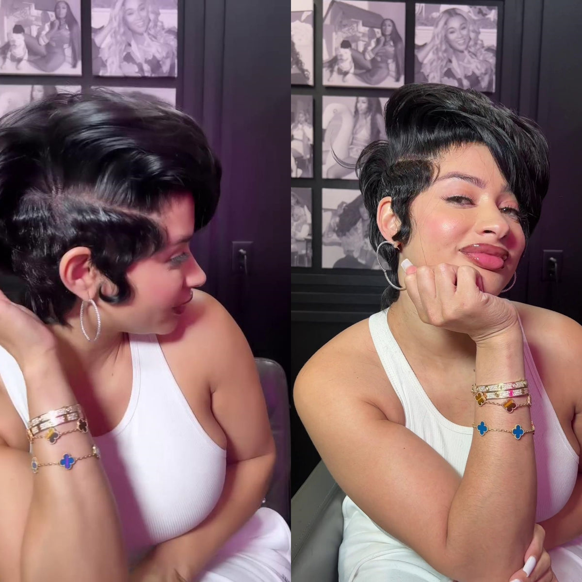 Full Lace Natural Realistic Side Parted Pixie Wig With Long Bangs