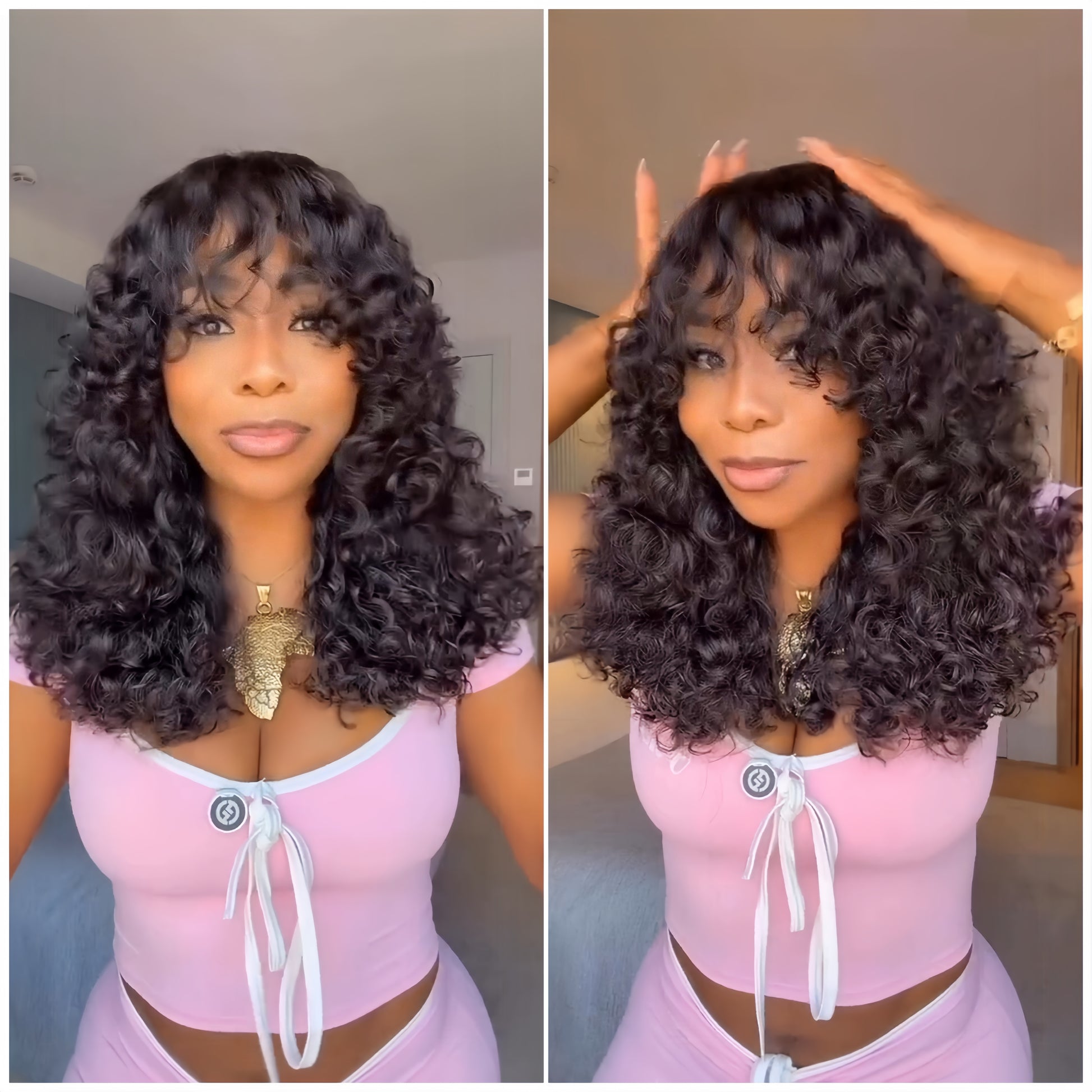 Glueless Curly Wig with Bangs 100% Human Hair Wigs