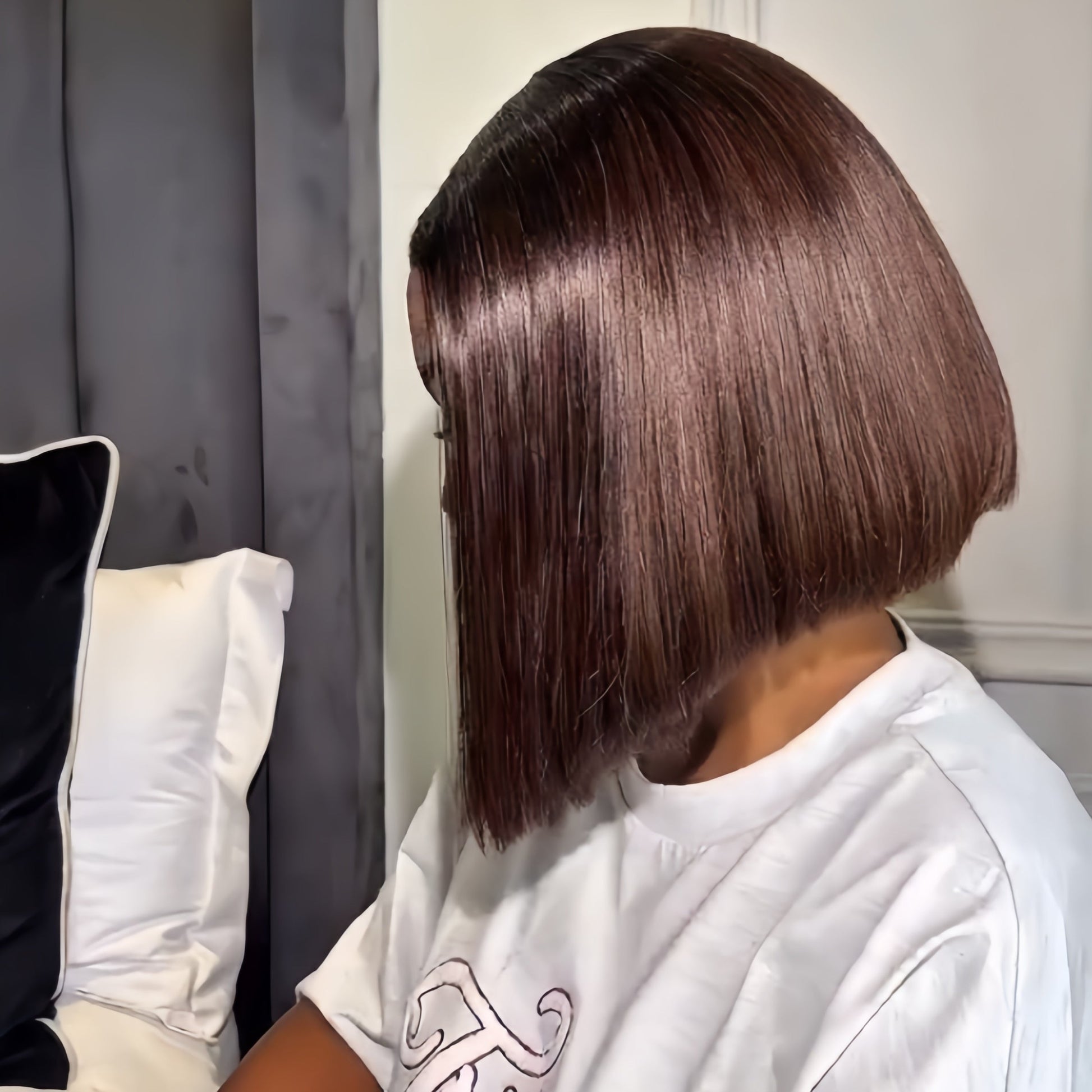 Ombre Dark Brown Natural silky Straight Bob 5x5 Lace Wig
