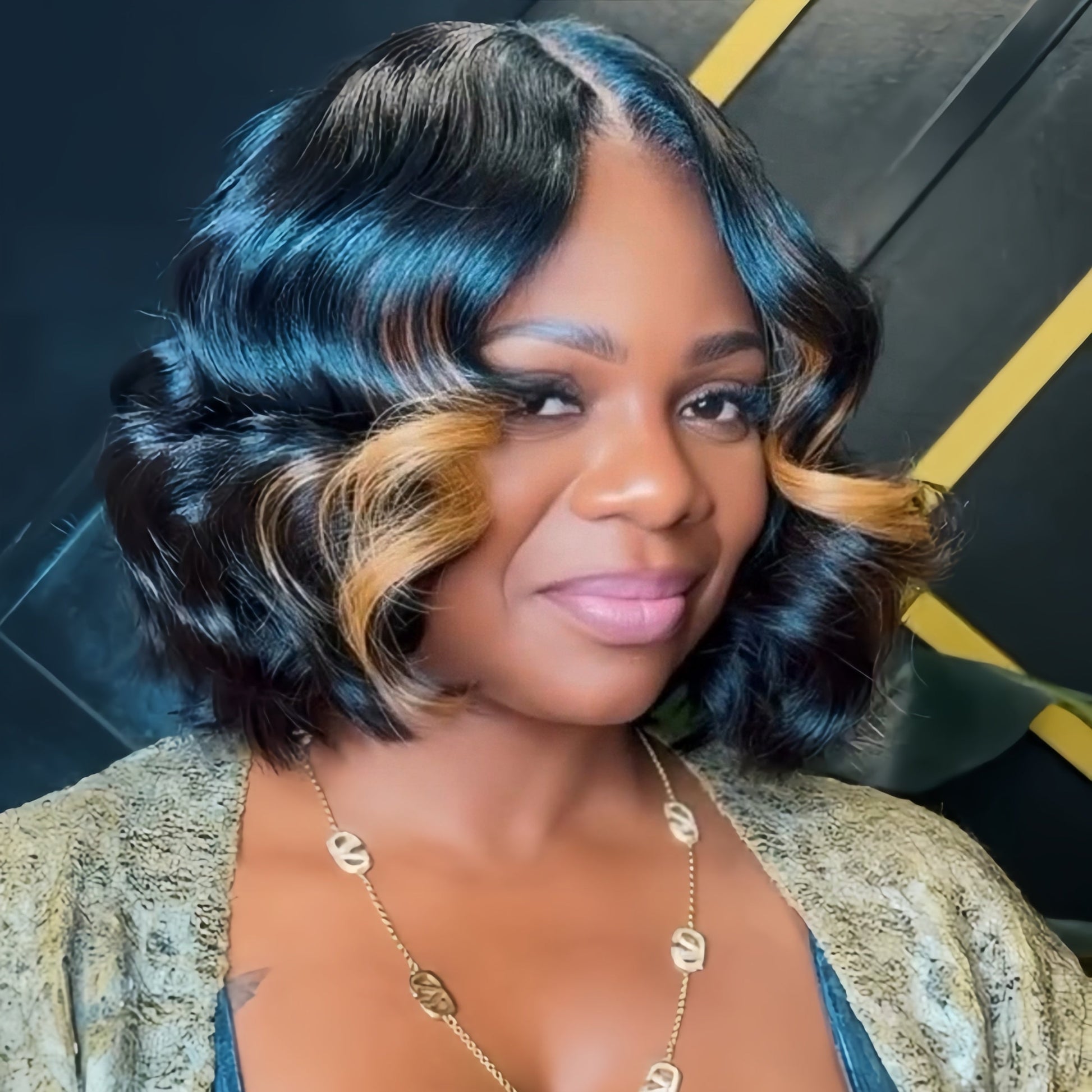 Put On & Go Blonde Highlight Fluffy Wave Bob Wig