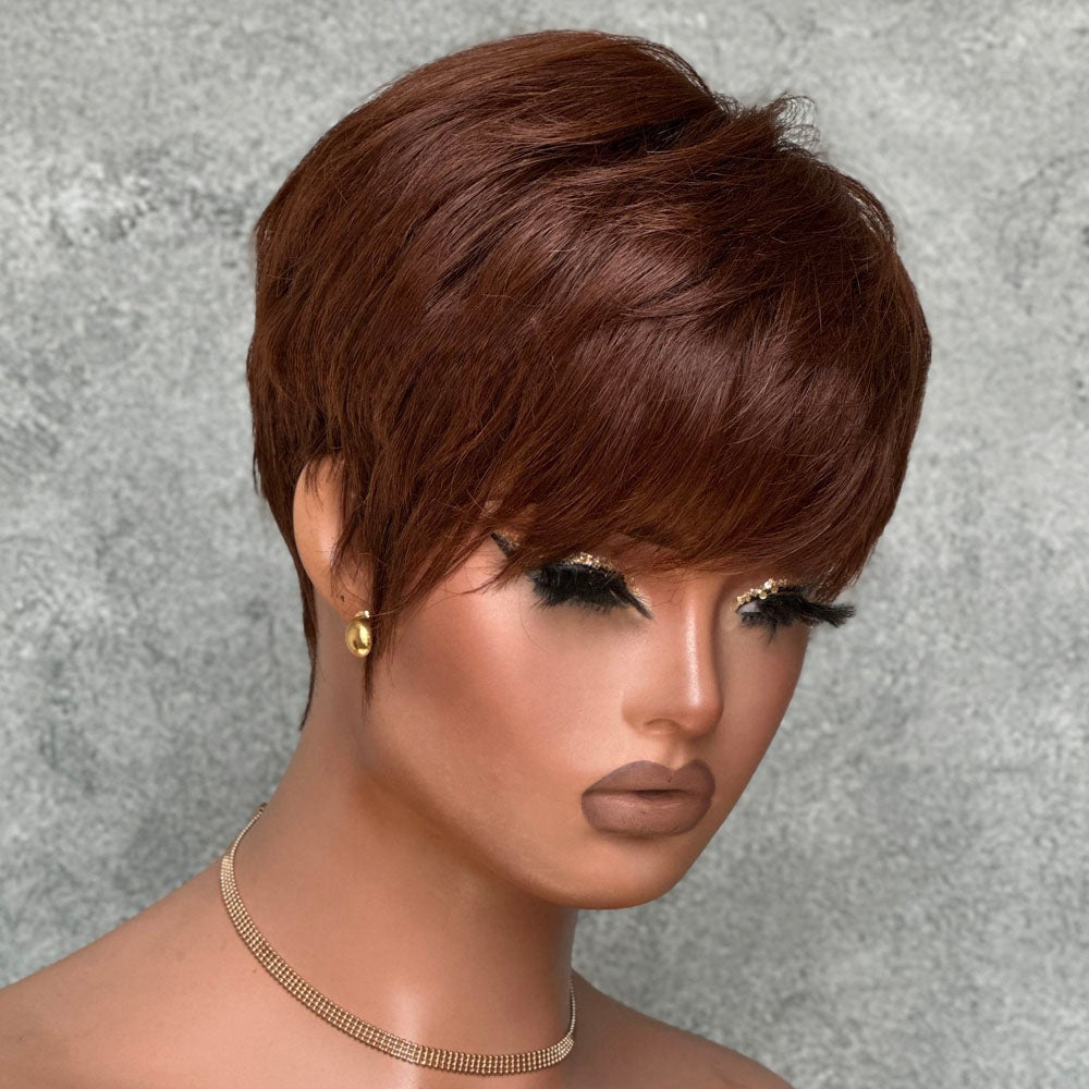 Put On & Go Brown Layered Pixie Cut Human Hair Wig With Bangs